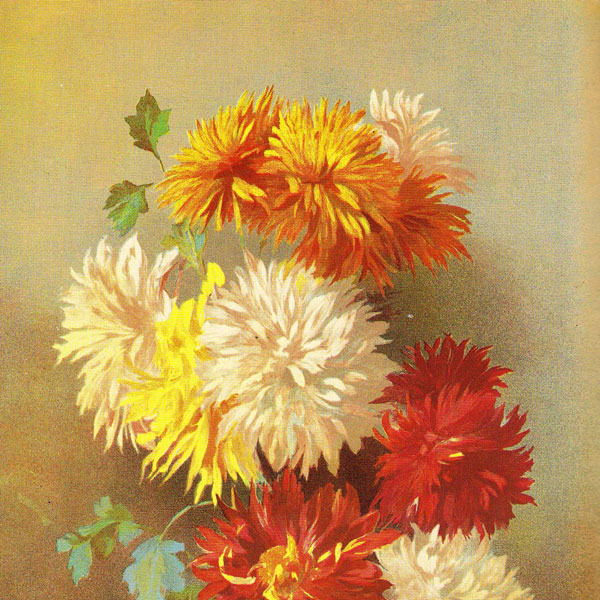 Un dipinto che ritrae un mazzo di crisantemi